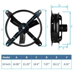 Tidoin 16 in. Black 2065 CFM High Speed Shutter Exhaust Fan with Adjustable Temperature Thermostat