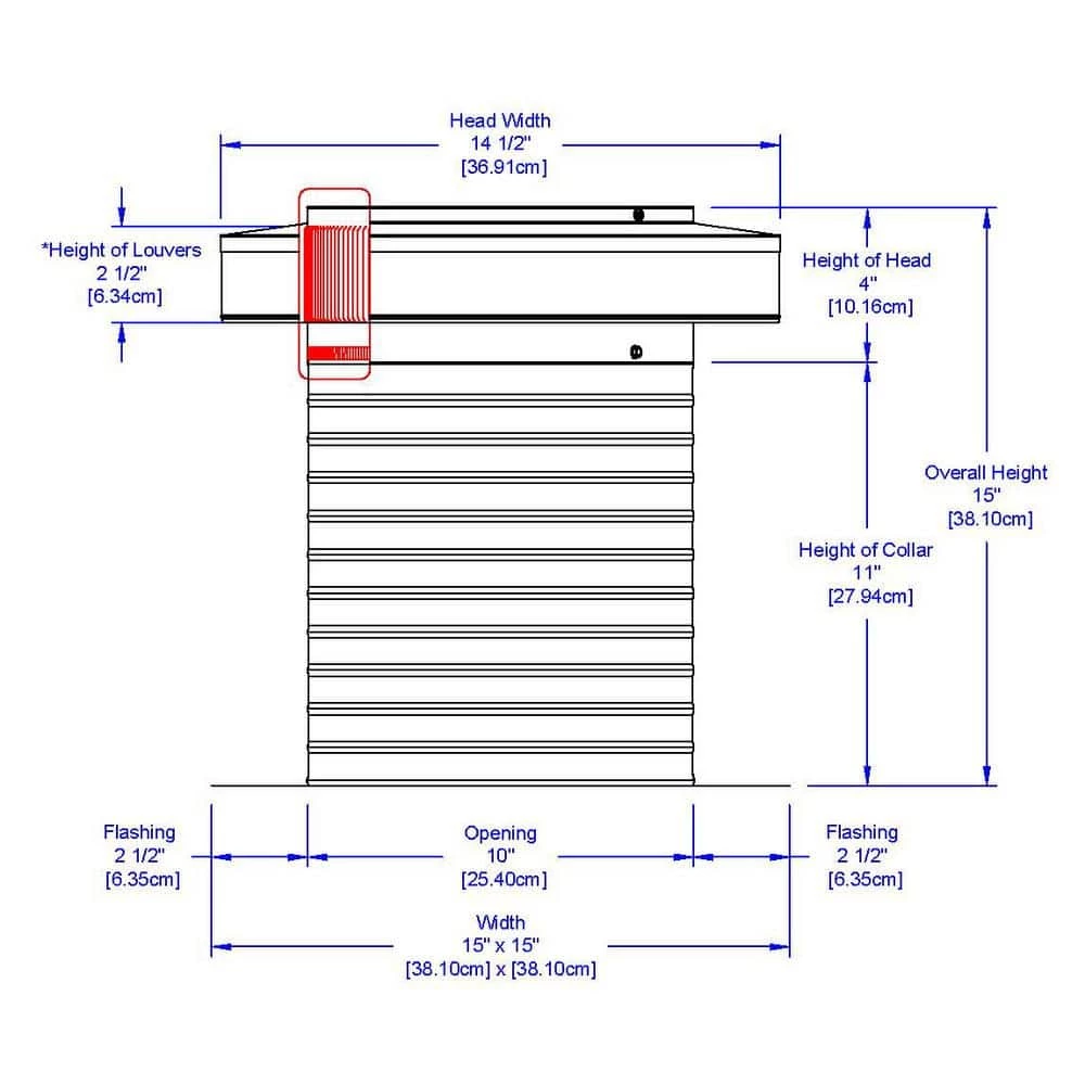 - Built-in inner vertical louver cylinder that keeps out insects, birds, and animals while allowing air to move through the vent without resistance