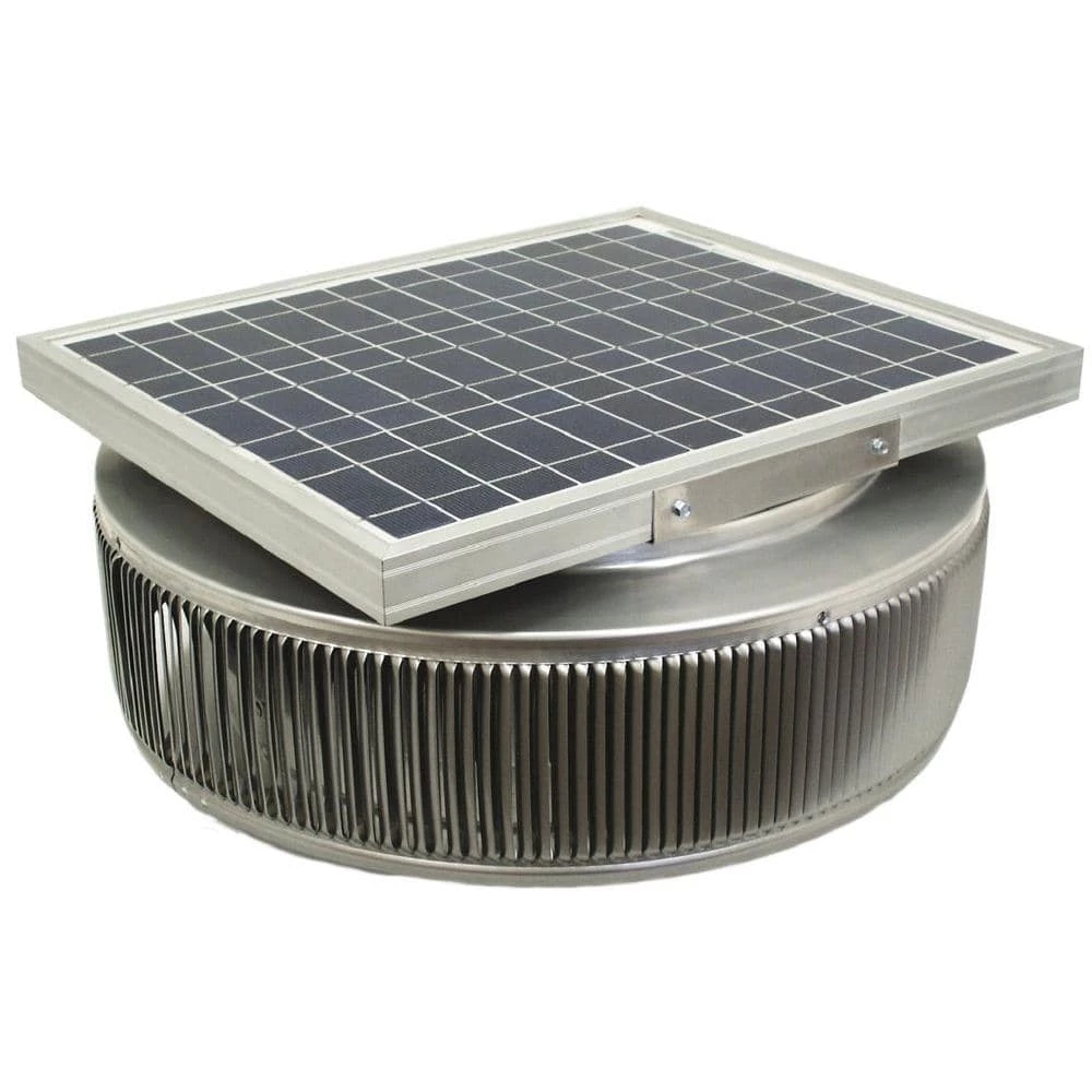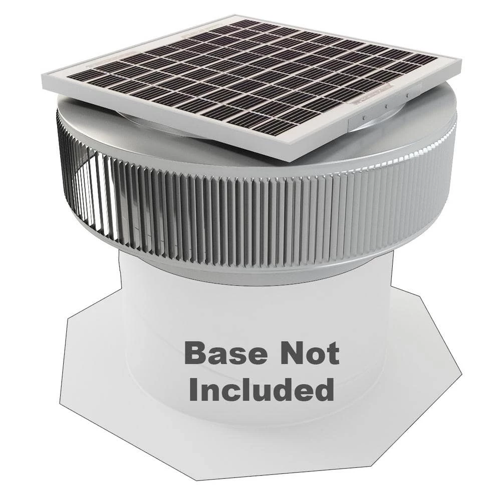 Active Ventilation Products Aura Solar Attic Fan Retrofit product line is designed to fit over a turbine ventilator roof base. It has a flared adapter that easily fits over an existing roof mounted metal base. The Aura Solar Attic Fan Retrofit will exhaust air continuously by using solar and wind power for optimum ventilation performance. Model ASF-14-RF has a 14 in. Dia throat opening and a 15-Watt solar panel providing energy to 4 EC fans on sunny days to increase the CFM (cubic feet per minute) of 1007 @ 0.1 SP of air flow performance. It is an excellent choice to exhaust attic heat in the summer and exhaust moisture in the winter. The Aura Solar Attic Fan Retrofit will produce 360 CFM at 11 mph without the solar powered fans through its patented engineered design with no moving parts. The attic fan is made of durable rust free aluminum and has 4 manufactured components: the vent head, 4 – EC fans, 1 – solar panel and adapter. The vent head’s patented design has three concentric cylinders with slotted vertical louvers. When air moves against the louvers of the outer and middle cylinders it is directed to create a circular airflow. The louvers of the inner cylinder face in the same direction as the air movement created by the outside cylinder. This air movement creates a Venturi effect which produces a vacuum or negative pressure to pull air from within the attic space.