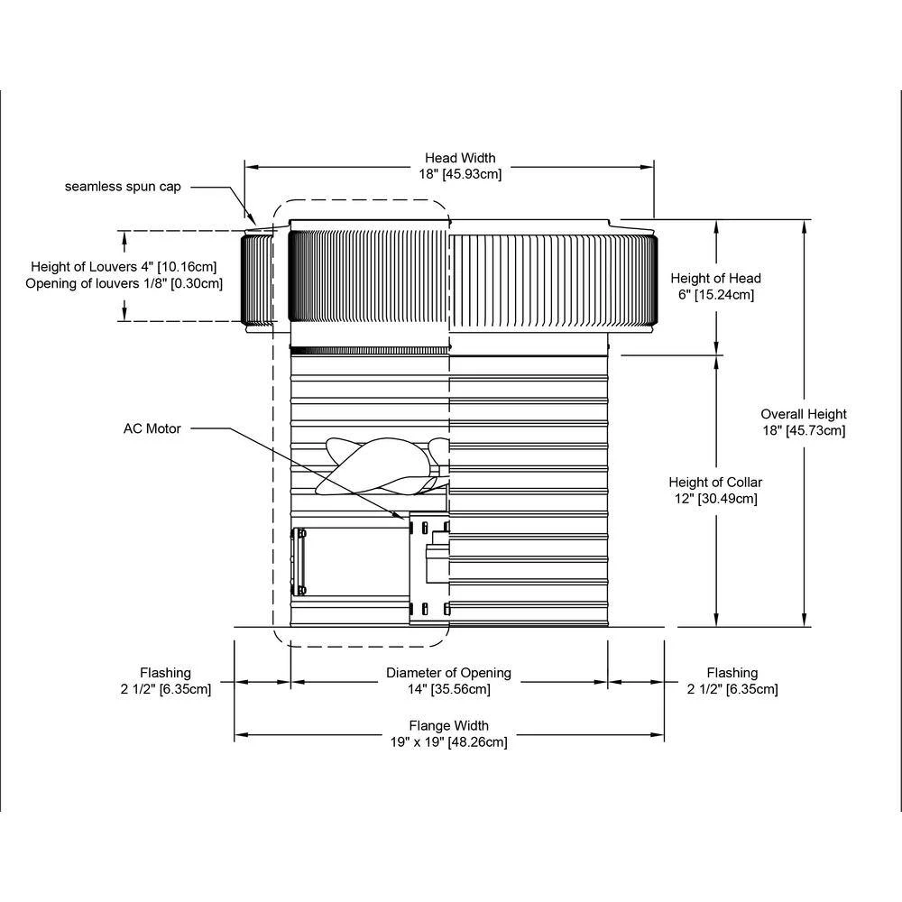 The Aura Fan EXHAUSTS CONTINUOUSLY whether the electric motor is ON or OFF. When the fan is off, outside air moving against the Aura Ventilator causes the Venturi effect, thereby creating an exhaust. The exhaust is created without the use of electricity or moving parts. On the days when the fan is not needed, the Aura Vent will still operate passively, this increases the life of the motor since it is not in constant use. The Aura Fan Ventilator reduces energy consumption. Note: 4 in. to 12 in. Collar vent models are for Flat Roof applications, depending on snow and rain totals in your region.
