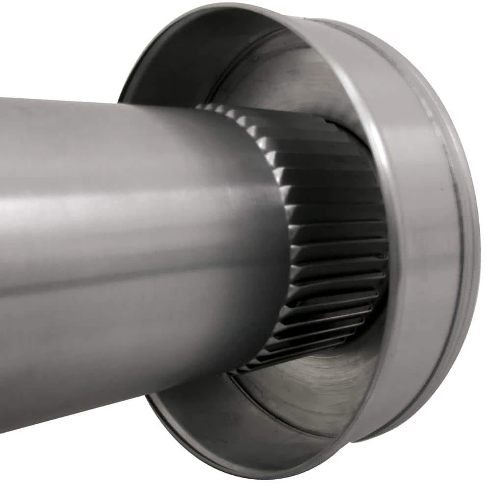The Round Back Roof Jack is used for ventilating bathroom fans or other duct applications. In addition, the round design is aerodynamic to withstand wind speeds up to 200 mph. It allows for maximum air to flow while alleviating back pressure. The Round Back Roof Jack is engineered to stop insects and wildlife from entering the duct. It is also designed to prevent rain or snow from entering. These vents have an all-aluminum construction. To clarify, this means they are durable, lightweight, and will not rust. The Roof Jack’s tail pipe is approximately 2 inches long and is corrugated at the bottom to fit existing duct work. This allows for a quick and easy installation. The RBV-3-C4-TP is the Round Back Roof Jack with a 3 inch inner diameter and 4 inch tall collar. In addition, it also has a 2 inch tailpipe that can be used for duct ventilation. It is mainly used to ventilating bathroom fans and range hoods.