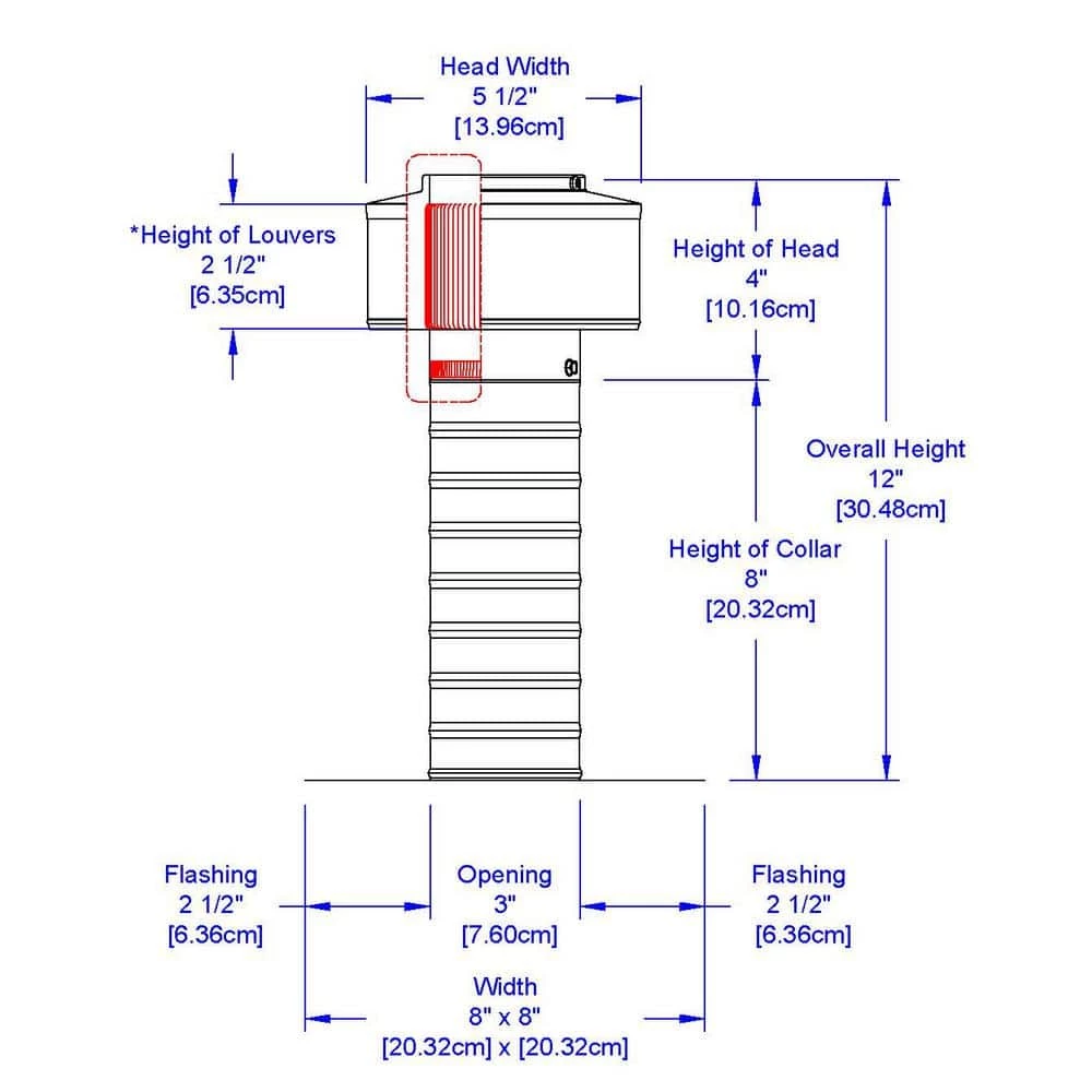 - Built-in inner vertical louver cylinder that keeps out insects, birds and animals while allowing air to move through the vent without resistance