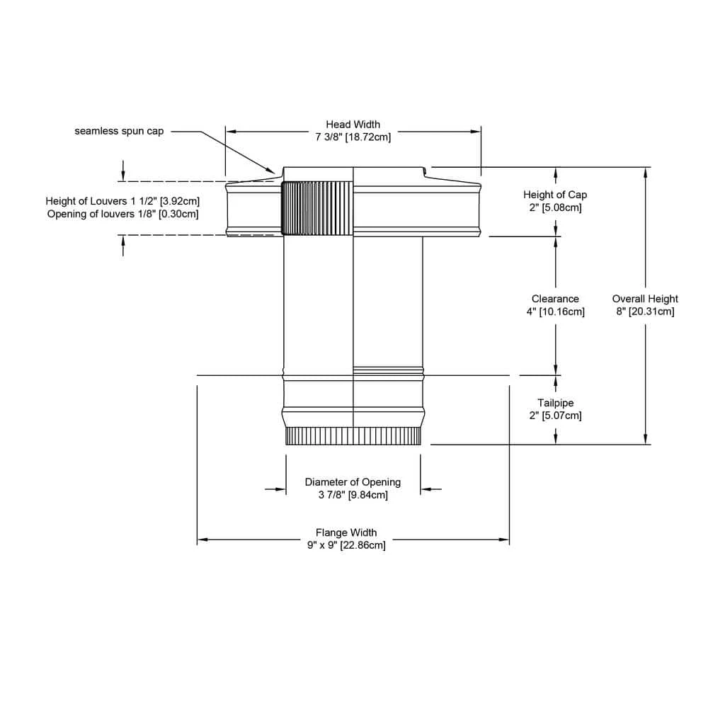 - Built-in inner vertical louver cylinder has a 1/8 in. opening between louver blades that will keep out insects, birds, and animals while allowing air to move through the vent without resistance