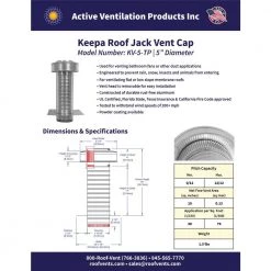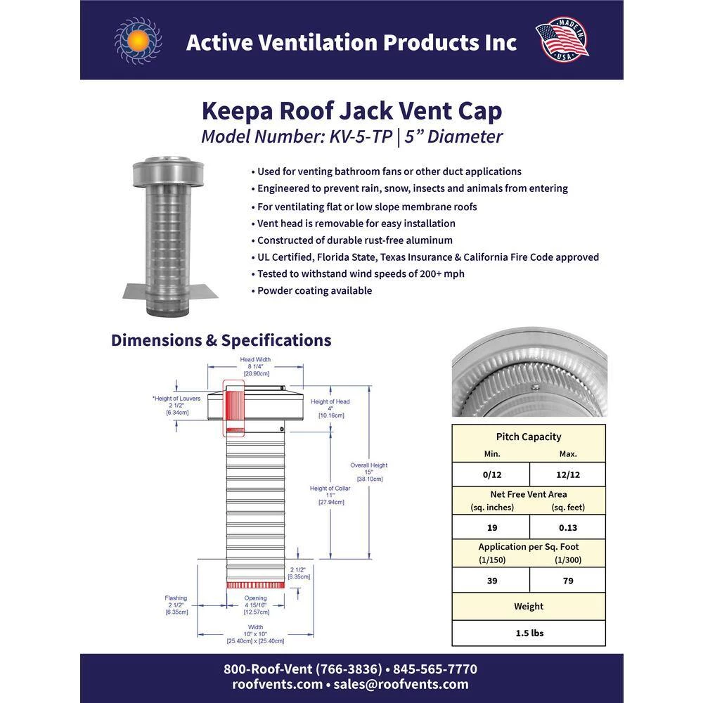 AVP’s Keepa Roof Jack is to be used in conjunction with bathroom fans or where ever exhaust vent protection is needed for a ducted system. The Keepa Roof Jack is an excellent choice for venting out air from a ducted system is because of the aerodynamic shape and louvered design. It allows for maximum air to flow while alleviating back pressure.Engineered to keep out insects or vermin from entering the duct, the Keepa Vent is also engineered to stop rain or snow from entering in all US climate zones. The Keepa’s standard 11 in. collar height is great for low slope membrane roofs that need ducted exhaust ventilation.