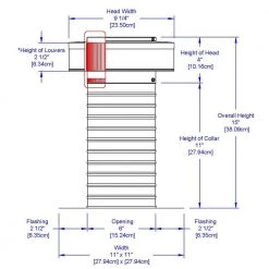- Built-in inner vertical louver cylinder that keeps out insects, birds, and animals while allowing air to move through the vent without resistance