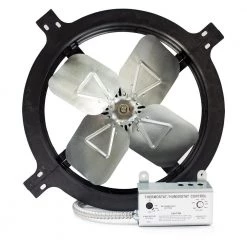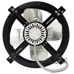 The Gable-mount power vents operate 30% quieter and 35% more efficiently than comparable units. The fan blade is encased in a patented series of rings not a cylinder like standard units. This open ring configuration allows the fan motor to move air more efficiently and with fewer restrictions. The Gable fan uses a thermostat control to help prevent heat build-up inside the attic.