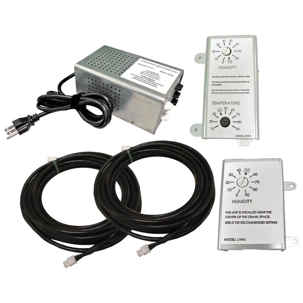 Controls Kit is required on all Series 5 and 6 low voltage foundation vents (sold separately). The humidistat turns the unit on to mitigate the humidity. The power supply unit is 24-Volt AC output, and operates up to 3 power vents.
