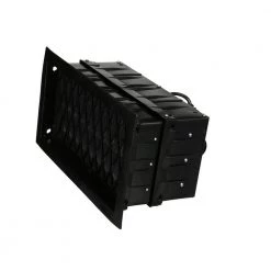 Foundation vents help remove moisture that can lead to damp rot and eventually costly damage, as well as attract termites. Powered foundation vents are extremely effective in providing ventilation for moisture control. A small fan is encased in the housing of the vent and runs continuously at a low speed when the humidity level exceeds the setting on the humidistat. The fan creates negative pressure in the foundation to pull air through the foundation. Powered vents are installed on 1 side of the foundation, with open, non-powered vents on the other side.