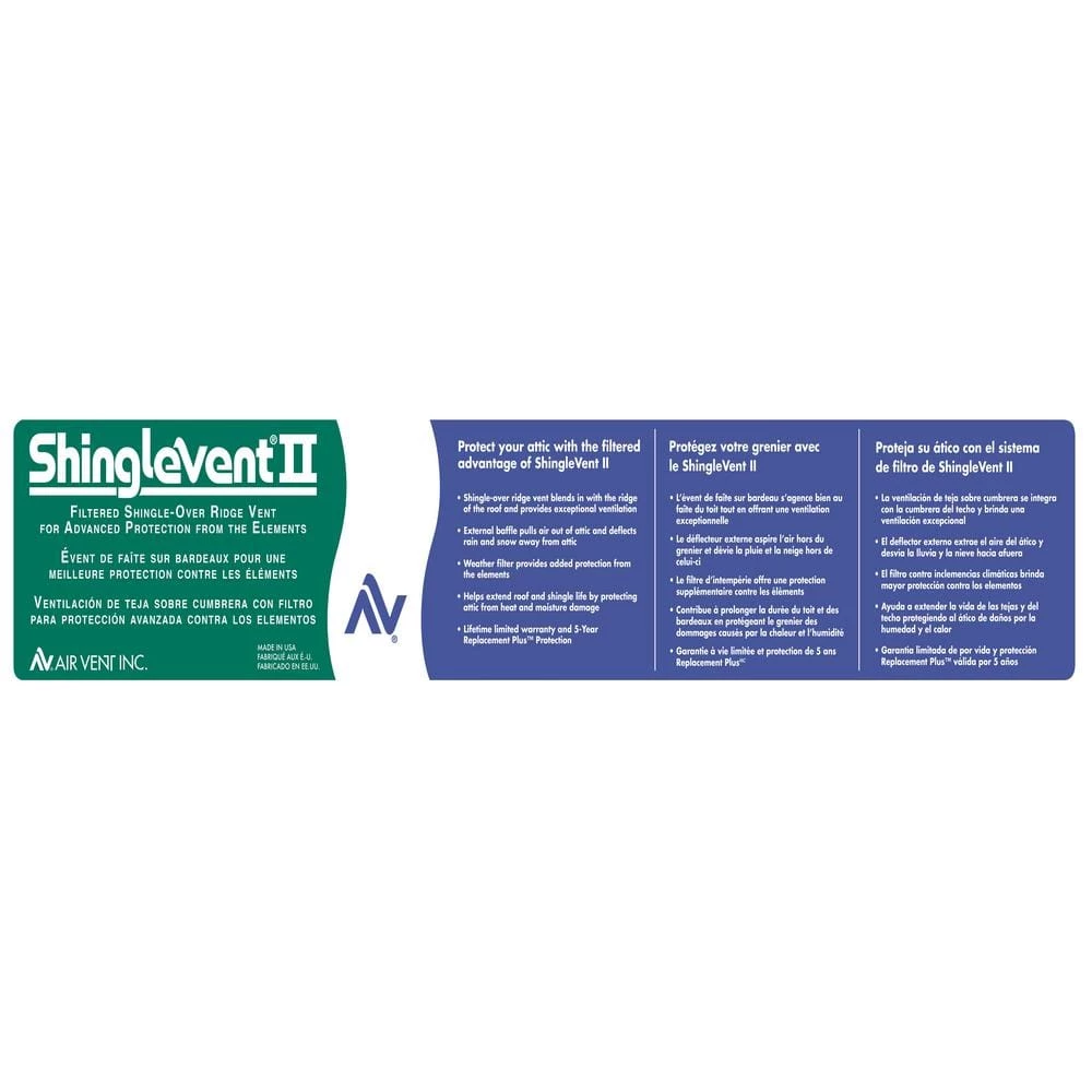ShingleVent II ridge vent installs on the peak of the roof allowing exhaust ventilation all along the roofline end-to-end. ShingleVent II ridge vent has a low profile, shingle-over design that blends in with the roof. Once installed ShingleVent II provides exceptional attic ventilation and is almost invisible from the ground.