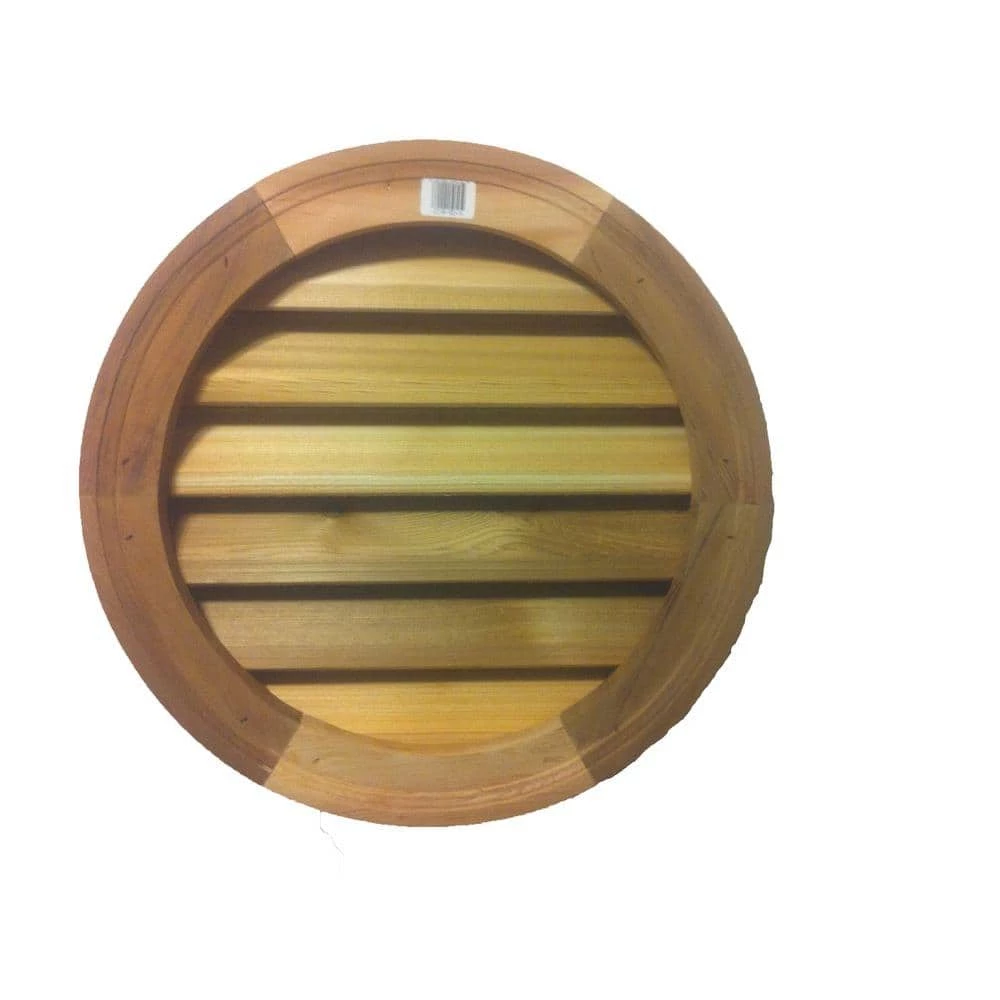 The Al’s Millworks 18 in. Wood Round Louver Vent is crafted from natural cedar wood and features a classic round shape. The vent includes brickmould and has an 18 in. size.