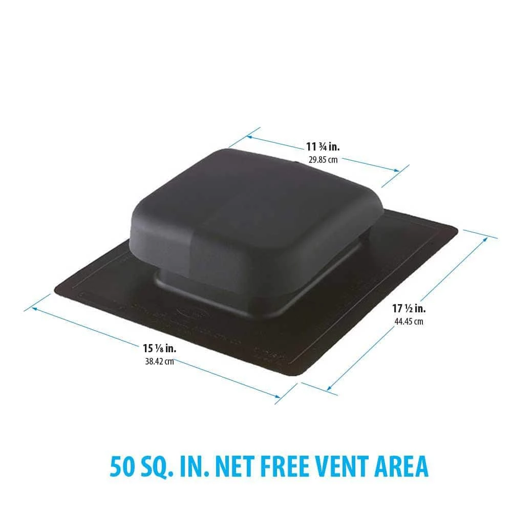 The Gibraltar 50 sq. in. roof vent is made from UV resistant high density polyethylene plastic. Color stabilizers are incorporated during manufacturing to minimize fading. This vent features an internal aluminum screen to prevent birds from nesting. This attic exhaust vent is part of a balanced ventilation system which saves energy and reduces the damaging effects of heat and moisture.