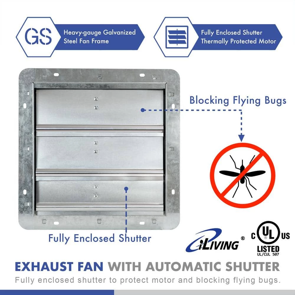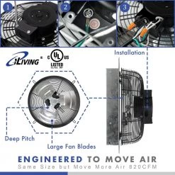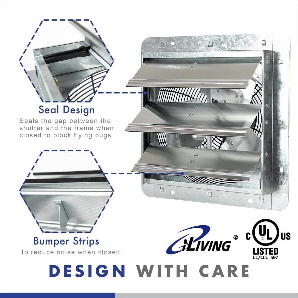 The iLIVING Shutter Exhaust Fan is perfect for removing excess heat, moisture and unpleasant odors from virtually any commercial location, including restaurants, factories, warehouses, barns and greenhouses. This fan features aluminum blades, OSHA compliant wire guards and automatic shutters that open and close in tandem with the operation of the fan. The completely enclosed motor is thermally protected and permanently lubricated. Equipped with the newest Thermospeed Controller which can easily control the temperature and speed. Auto cycle On/OFF at your desired temperature. The fan comes fully assembled out of the box, only installation required is the electrical hardwiring.