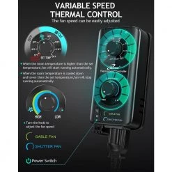 - Speed and thermal control – variable speed and temperature regulation control using ThermoSpeed controller, range 600 – 2339 CFM, temperature control range 32°F – 130°F