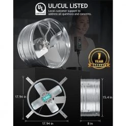 - Build to last – industrial grade galvanized steel housing, reliable direct drive motor, variable speed, UL certified, noise level is less than 60 dBA