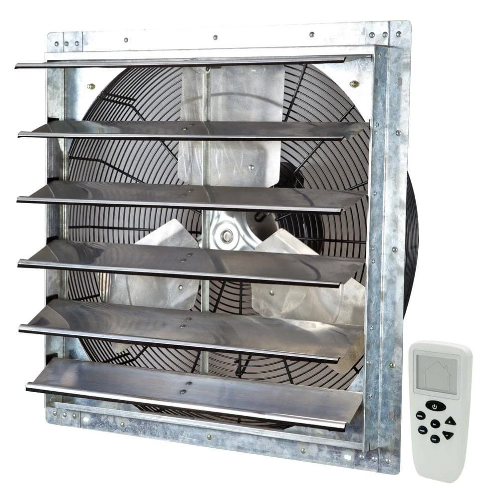The iLIVING smart remote shutter exhaust fans are equipped with a thermostat, humidistat, variable speed and timer. These fans can be activated with a remote control up to 1,000 ft. range. The iLIVING exhaust fans are perfect for removing excess heat, moisture and unpleasant odors from virtually any commercial location, including restaurants, factories, warehouses, barns and greenhouses. This fan features aluminum blades, OSHA compliant wire guards and automatic shutters that open and close in tandem with the operation of the fan. The completely enclosed motor is thermally protected and permanently lubricated. The fan comes fully assembled out of the box. The shutter fan comes in 6 different sizes: 10 in., 12 in., 16 in., 18 in., 20 in., 24 in.