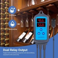 - Dual relay output: support both humidifying equipment and dehumidifying equipment voltage: 100-Volt AC to 230-Volt AC 50 Hz/60 Hz, 10 Amp maximum power: 1200-Watt (120-Volt AC), 2200-Watt (220-Volt AC) humidity measurement range 10 99 % RH relative humidity accuracy plus minus 3% RH plus/minus 5% RH