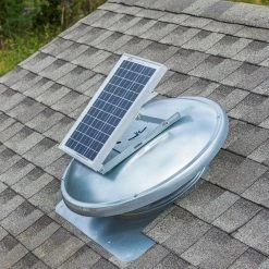 The GAF Master Flow 15-Watt Solar Powered Roof Mount Attic Fan will help remove excess heat and moisture from your attic to protect your roofing system from premature deterioration. The Solar Powered fan requires no wiring, uses no electricity, and works with your existing intake vents to help lower the temperature in your attic. The 24-Volt DC brushless motor provides airflow up to 525 CFM and requires no maintenance. The impact-resistant, 15-Watt solar panel has a tilt and swivel design to provide ideal sun exposure. Recommended usage for this unit is 1 unit per 800 sq. ft. of attic space with a minimum intake ventilation of 240 sq. in. of net free area.