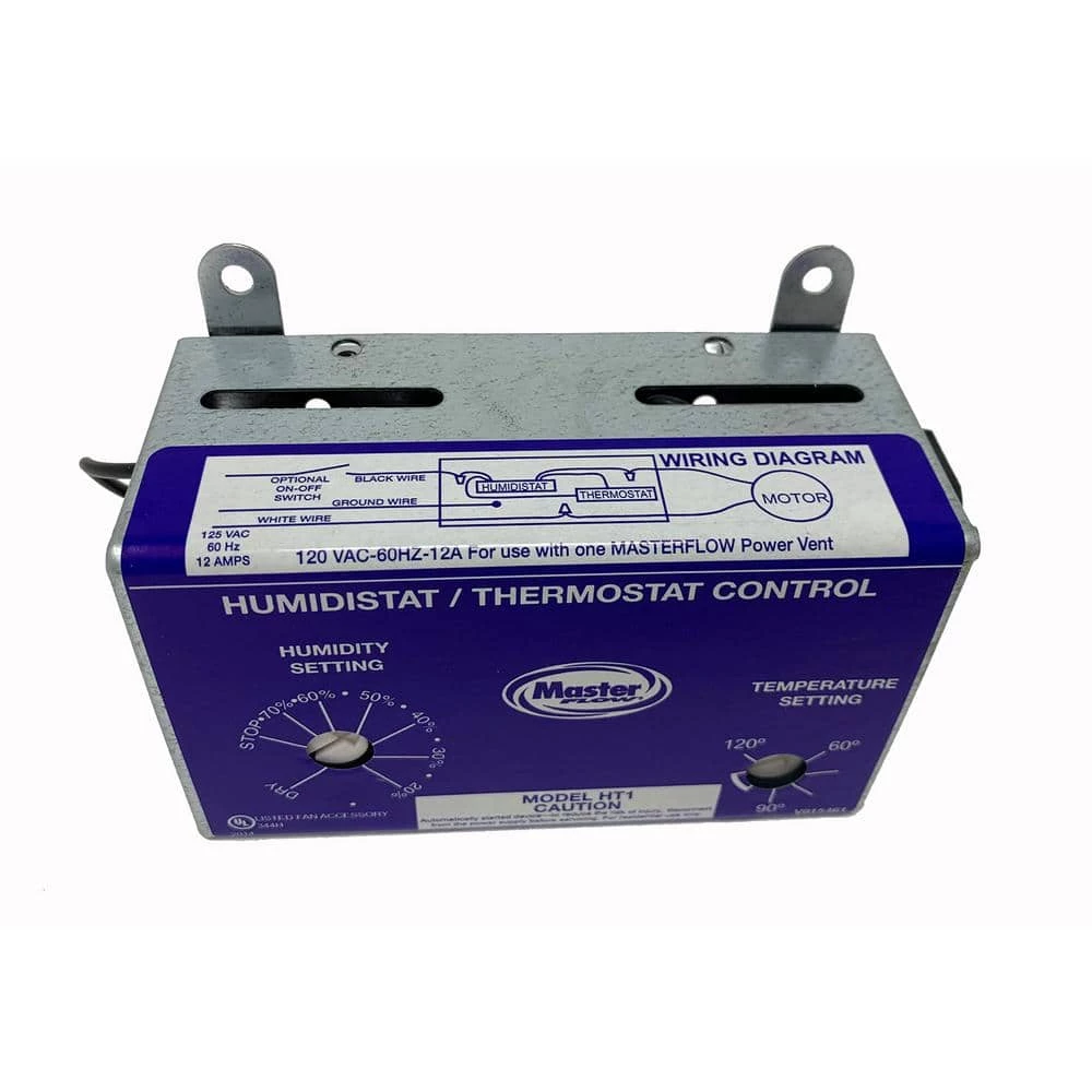 The GAF Master Flow adjustable Humidistat/Thermostat Combo works with GAF Master Flow EGV/ERV Series Vents. It works in harmony with your powered vent to help control damaging moisture. It also reduces heat accumulation and buildup in your attic. And is fully adjustable for varying climates.