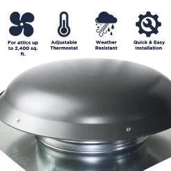 - Ventilates attic spaces up to 2,400 sq. ft.