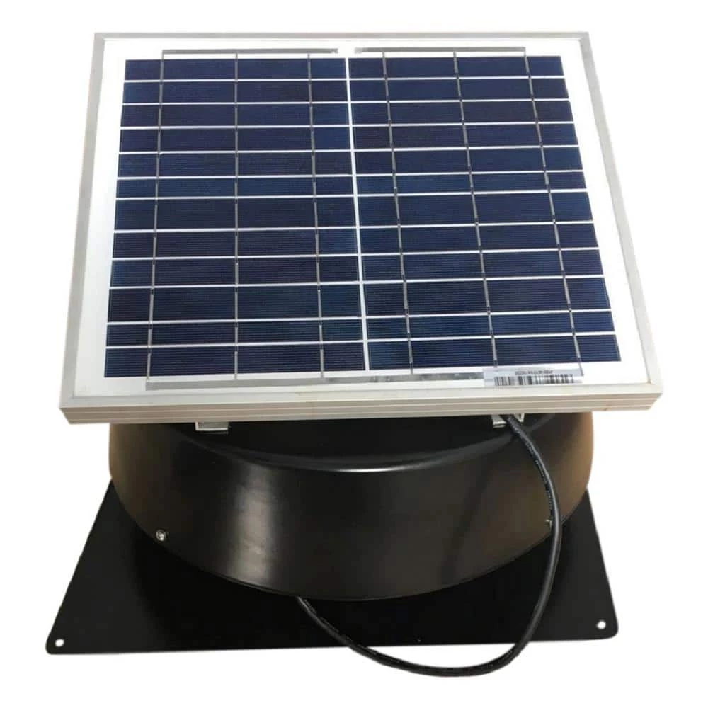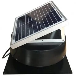 The Remington Solar 660 CFM Solar-Powered Roof-Mount Exhaust Fan will help remove excess heat and moisture from your small attic to protect your roofing system from premature deterioration. This fan is ideal for small attic spaces, garages, tool sheds, chicken coops, utility spaces, greenhouses, and shipping containers. The Solar Powered fan requires no wiring, uses no electricity, and works with your existing intake vents to help lower the temperature in your attic. The 12-Volt DC brushless motor provides airflow up to 660 CFM and requires no maintenance. The impact resistant, 10-Watt solar panel has a tilt to provide ideal sun exposure. Recommended usage for this unit is 1 unit per 900 sq. ft. of attic space with a minimum intake ventilation of 300 sq. in. of net free area. Comes in black only.