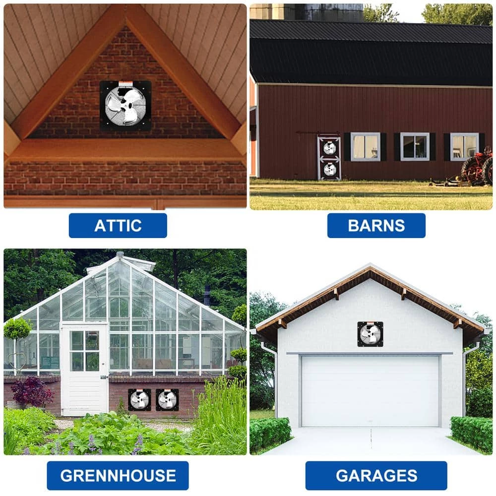 - APPLICATIONS: This 12 inch exhaust fan can help replace your ac unit by cooling your garage, attic, greenhouse shop or chicken coop.