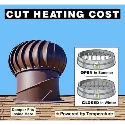 - Restricts turbine’s suction and exhausts attic moisture in winter