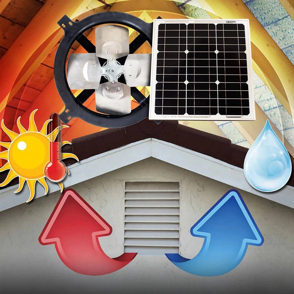 The Solar Powered Gable-Mounted Attic Vent operates during the day and collects power from the sun to convert into electricity. There’s no electrical hookup or electrical costs ever. It’s easy to install and easy on your wallet. And that means environmentally friendly, budget conscious operation for year-round comfort.